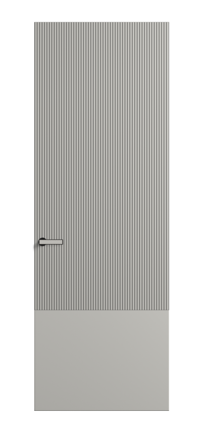 Это полотна с рельефной фрезеровкой. Этот прием делает интерьер объемным, тактильным, вносит интересную текстуру и создает современный образ. Волнистый рельеф может быть выполнен по ламелям из массива дуба в древесных матовых отделках, либо исполнен по натуральному и экологически безопасному материалу — ХДФ, покрытому гладкой эмалью актуальных оттенков.